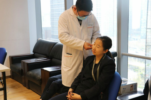 健康管理師為企業(yè)員工貼耳穴