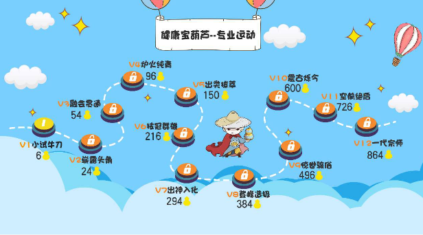 “大俠健康”強(qiáng)調(diào)用戶的參與感和獲得感,以游戲化運(yùn)營(yíng)模式提高用戶在使用過程中的交互體驗(yàn)。如在“健康寶葫蘆”的專業(yè)運(yùn)動(dòng)模塊下,通過“寶葫蘆”的不同數(shù)目顯示量化管理健康指標(biāo),將有效運(yùn)動(dòng)效果分為小試牛刀、嶄露頭角、融會(huì)貫通等十二個(gè)等級(jí),以游戲化的升級(jí)過程賦予用戶健康管理能力,協(xié)助用戶自主完成健康計(jì)劃。